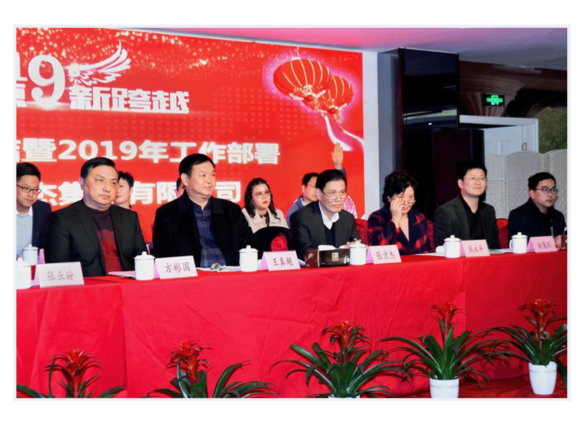 On January 30, 2019, the company held the "Shanghai Xinyi Ruijie Group 2018 Year-end Summary and Commendation Conference and 2019 Work Deployment Conference" at the Elizabeth Hotel. The company leaders, including Chairman and President Zhang Fangjie, as well as all employees from the group company, attended the conference. Shi Wenquan, the secretary of the Party Committee of Zhangyan Town, Jinshan District, Hu Jianbin, the general manager of Zhangyan Industrial Zone, and Zhuang Yuzhi, the general manager of Shanghai Riming Company of Armor Group, were specially invited to attend the conference, Yuan Yongda, Secretary-General of Aluminum Industry Association, and other guests attended the meeting.