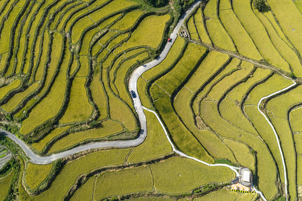 浙江省龍泉市?石街道李山頭村的千畝稻田一片金黃,構(gòu)成一幅生機(jī)勃勃的“豐”景畫卷。章勇濤攝